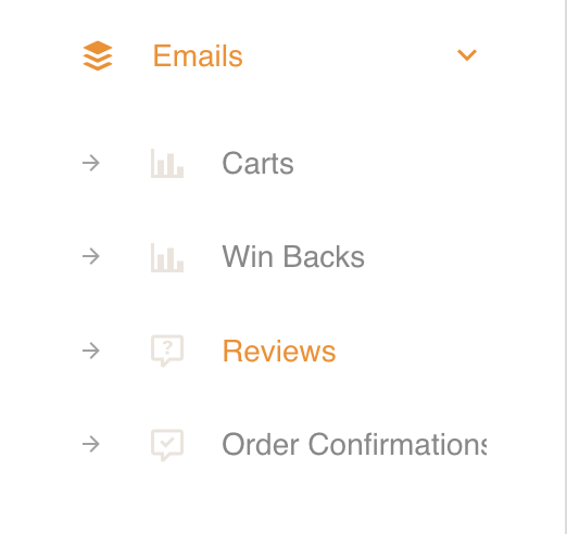 On the left navigation, click EMAILS and then select which email flow you wish to edit. In this case, you’ll select Carts.
